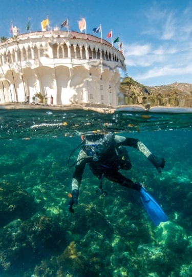 Casino Point Dive Park on the right side of the cove is a popular spot for snorkelers and divers.