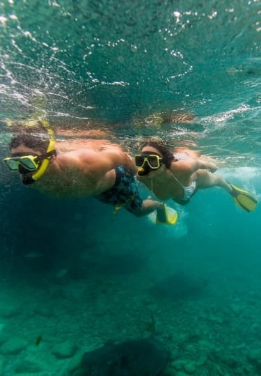 Cabana Beach is what vacation dreams are made of—envision modern sun loungers tucked under thatched-roof umbrellas, a private pier, and a toes-in-the-sand cocktail bar surrounded by swaying palm trees. But if you thought the beach was great, wait until you see what’s under the water.
