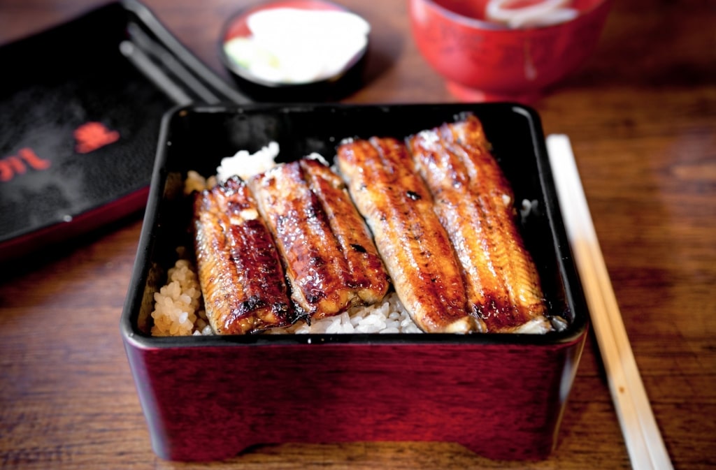 A Japanese dish traditionally eaten to offset summer fatigue is nutrient-rich freshwater eel, or unagi. Charcoal-grilled, it’s served on rice with a sweet-salty sauce.