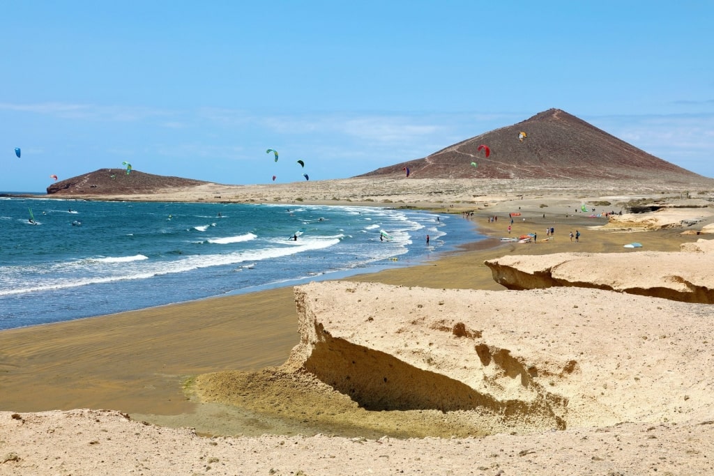 This seductive south Tenerife beach is popular among islanders for its shallow water, blond sand, and pretty palm trees. If you’re interested in trying windsurfing, this is one of the best beaches in Tenerife to give it a whirl.