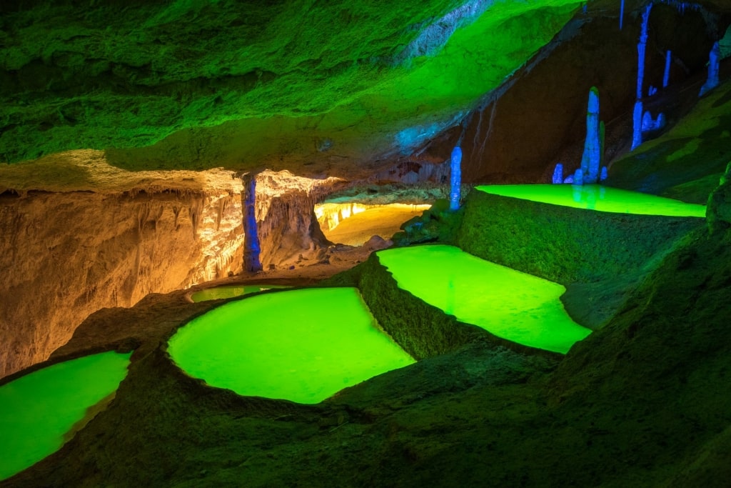 The natural rock formations would already be impressive, but locals in Ibiza opted to up the ante a little bit with a colorful light and sound show next to a waterfall. Each 40-minute tour culminates in this display, which makes for rather spectacular photographs.