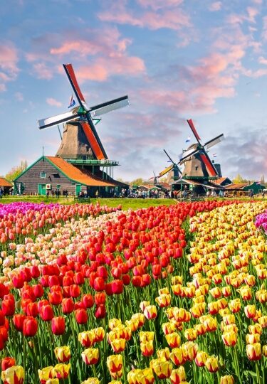 Today, the bold green and orange mills and white-gabled houses serve the tourist industry, and you’ll find gift shops offering every kind of clog imaginable, working windmills (including the world’s last working dye mill), and historic exhibitions dotted throughout this open-air museum. Walk or cycle along the banks of the canals and admire the now still arms of the windmills reflected in the waters.