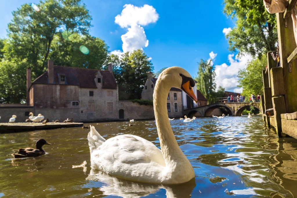 Whether you opt to take a boat tour or simply walk alongside the canals, you’re inevitably going to catch a glimpse of some of Bruges’ most famous residents: swans. These majestic white birds can be seen paddling languidly through the city’s canals. They’ve been a fixture in town since the 1400s and were long associated with great wealth and status.