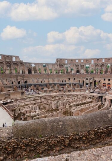 The Colosseum’s 80 arches were designed to allow spectators quick and easy access to the theater’s tiered seating, while the subterranean levels include cages, cells, and trapdoors, where prisoners, animals, and gladiators were kept.
