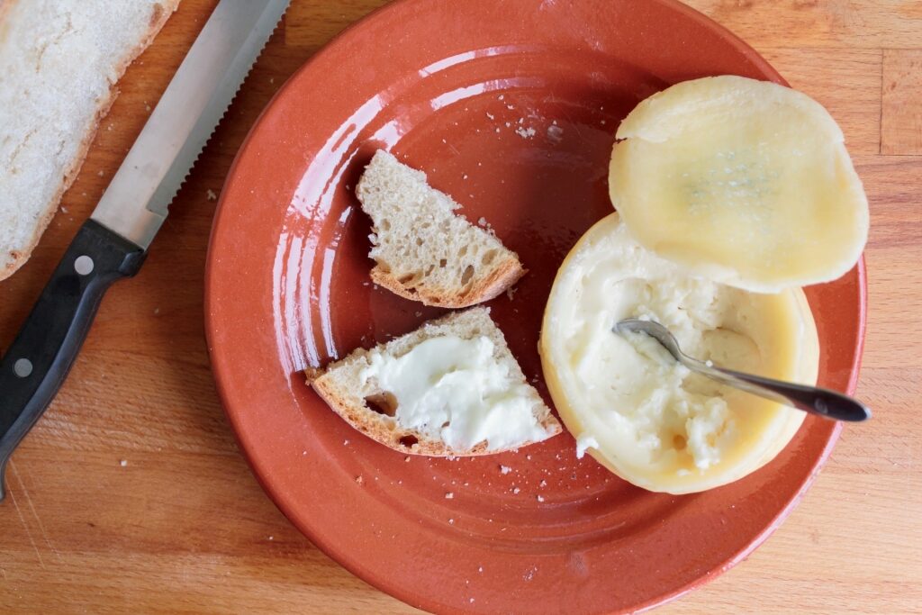 Sometimes, Azeitão will appear on the table when you arrive at a restaurant, alongside the olives, bread, and butter. These appetizers are known as couvert in Portugal and will be charged—if you don’t wish to have the pre-meal snacks, politely decline, and the server will swiftly remove them.