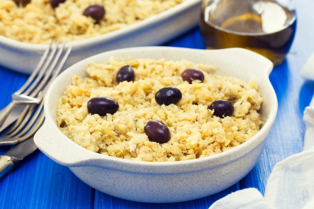 While there are hundreds of bacalhau recipes (claims range from 365 to over 1,000), a few versions of the dish are the most common. Bacalhau à brás, hailing from the Bairro Alto neighborhood of Lisbon, mixes shredded cod with onions, fried potato sticks, and eggs.