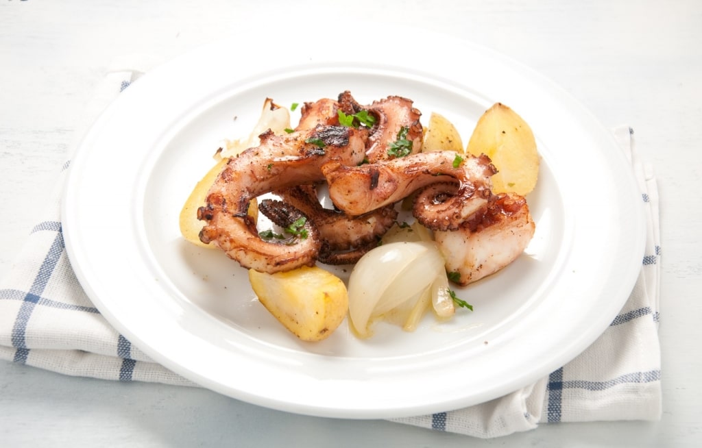 The traditional recipe has no frills, allowing the ingredients really to speak for themselves. The octopus is boiled until tender as the potatoes bake before the two are combined and coated in olive oil, garlic, bay leaves, and pepper.