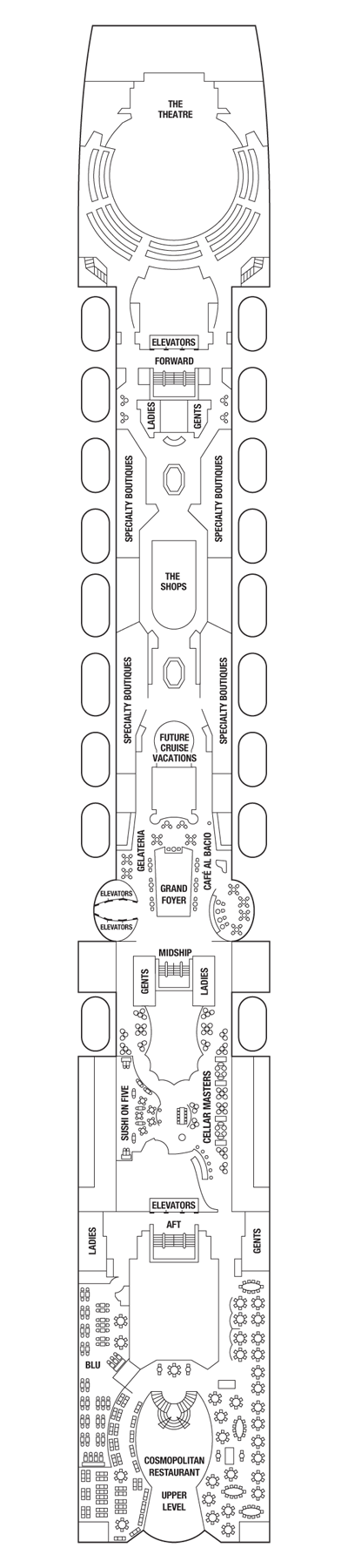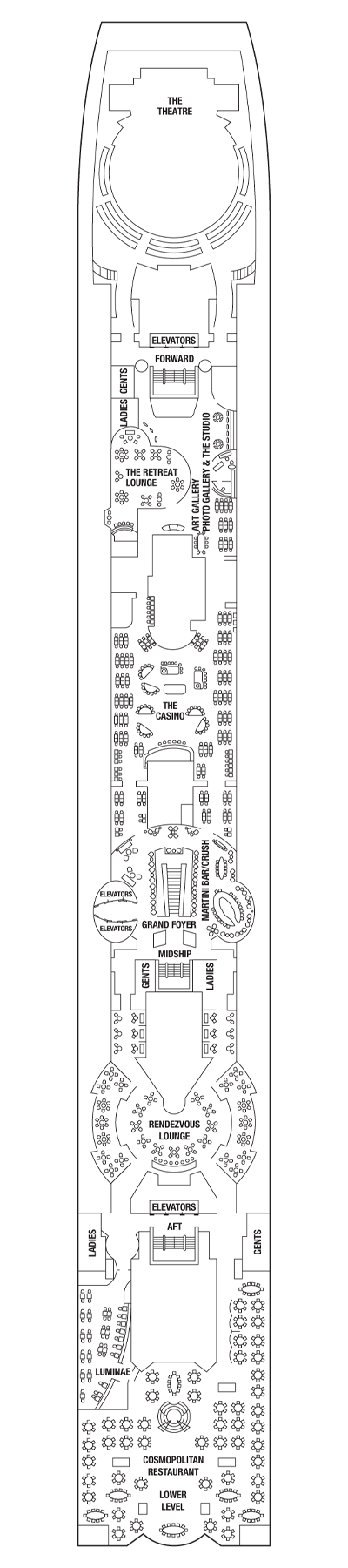 The Theatre is the premier live performance venue aboard Celebrity Summit. While accommodating a generous audience, it retains a comfortable, intimate atmosphere, bringing you production shows, beautiful musical arrangements, and sidesplitting comedy.