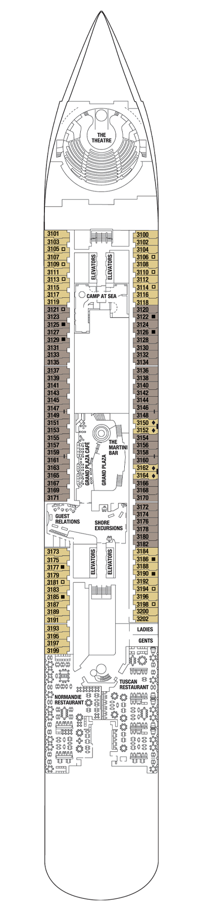 A new multi-purpose area that brings our destinations to life, The Destination Gateway is a portal that leads to all things global through onshore exploration and onboard enrichment. When not in use as a embarkation station, the space is transformed into an intimate setting for programming centered on destination immersion, shore excursions, and more.