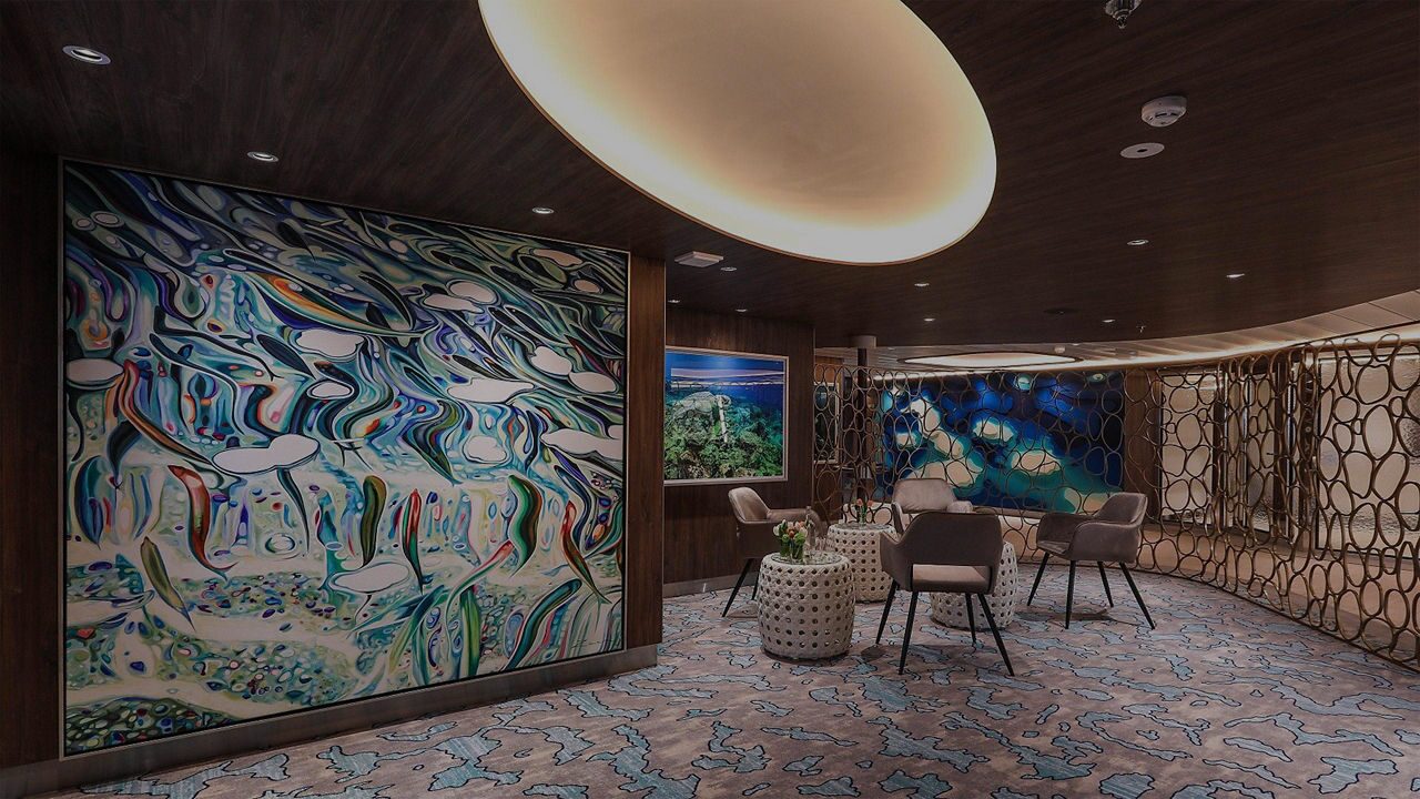 One of the finishing touches that makes Celebrity Flora one-of-a-kind is the work Rebecca Wilson did to curate a coherent collection of original art that was specific to the Galapagos and could be found nowhere else except Flora.