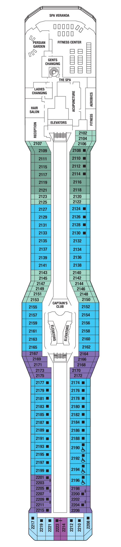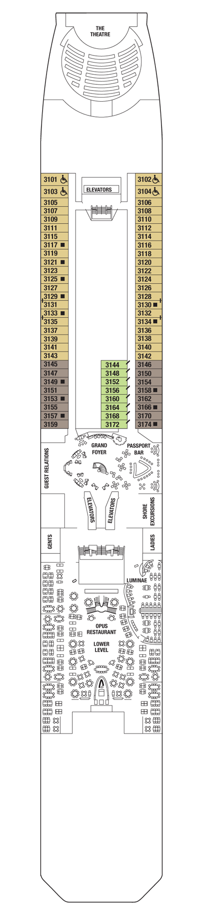 Our stunning foyer greets you with a spectacular onyx staircase, marble floors and the first panoramic ocean-view glass elevators at sea.