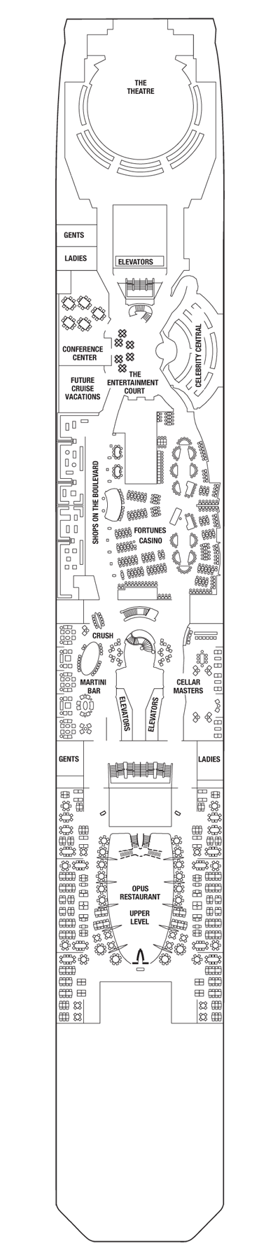 The Theater is the premier live performance venue aboard Celebrity Reflection. While accommodating a generous audience, it retains a comfortable, intimate atmosphere, bringing you production shows, beautiful musical arrangements, and sidesplitting comedy.