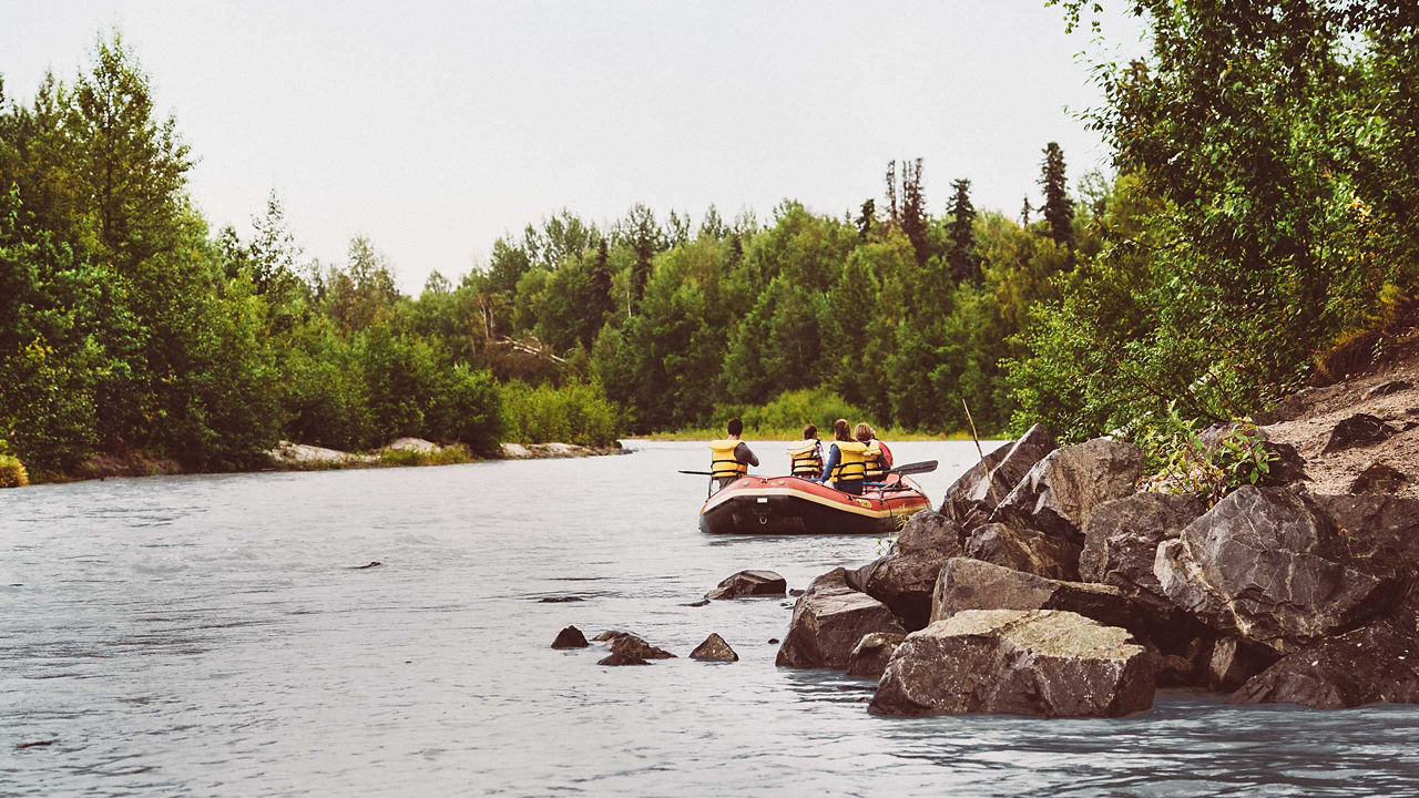 Spend your morning relaxing or exploring before boarding the Wilderness Express, a luxurious glass-domed railcar, for the scenic ride to Talkeetna. From 5:00 p.m., enjoy time on your own to explore nearby nature trails. Overnight at the Talkeetna Alaskan Lodge.