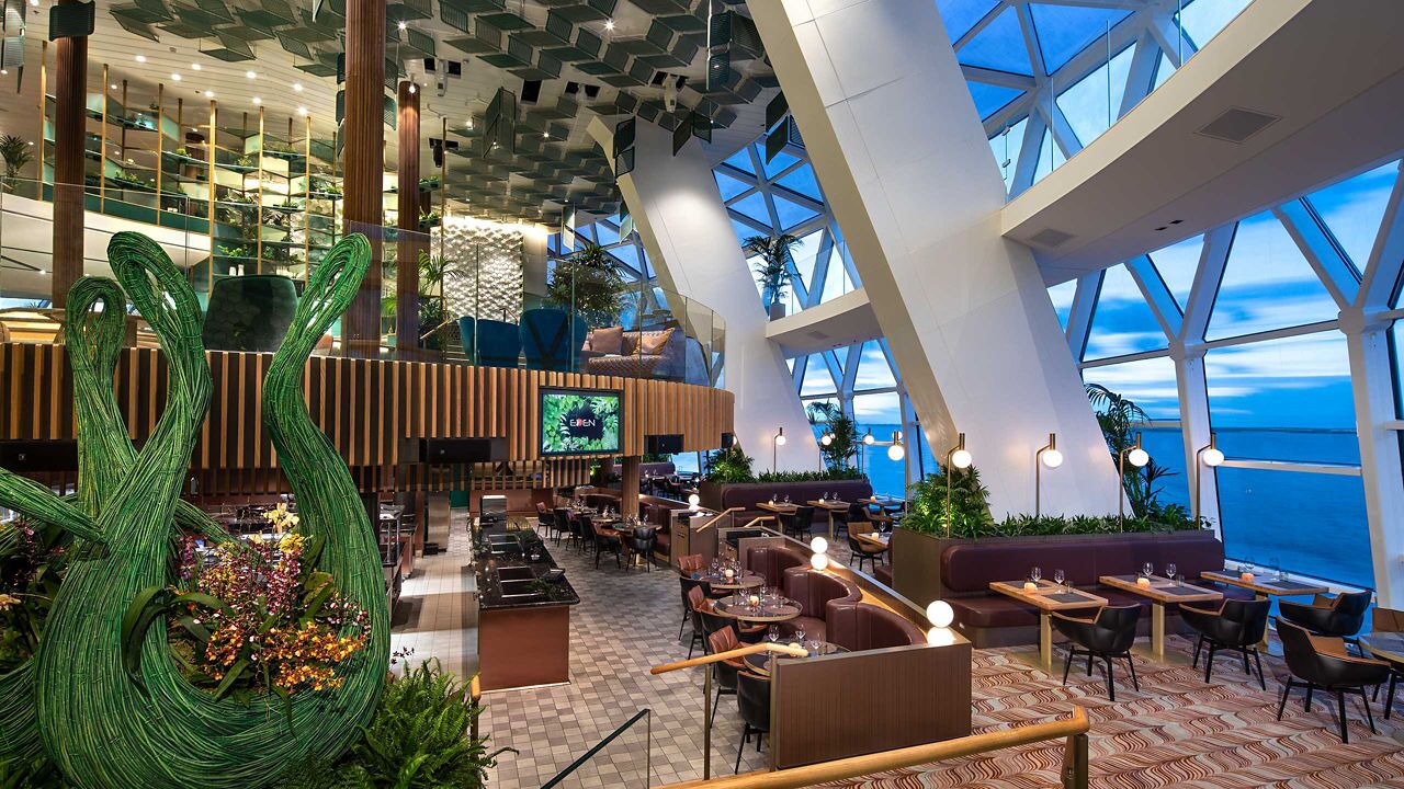 The cuisine and wine list at Eden Restaurant are rooted in nature and draw inspiration from the regions we visit throughout the world. Descend into Eden Restaurant, and enjoy a selection of appetizers, entrees, and desserts, while watching our chefs put their finishing touches on each culinary creation in the beautiful open kitchen. Featured dishes include roasted Carabineros shrimp from Spain, sheep’s milk ricotta gnocchi with smoked pecorino cheese, as well as duet of filet mignon and mini short ribs wellington. These expertly executed dishes are as beautiful as they are