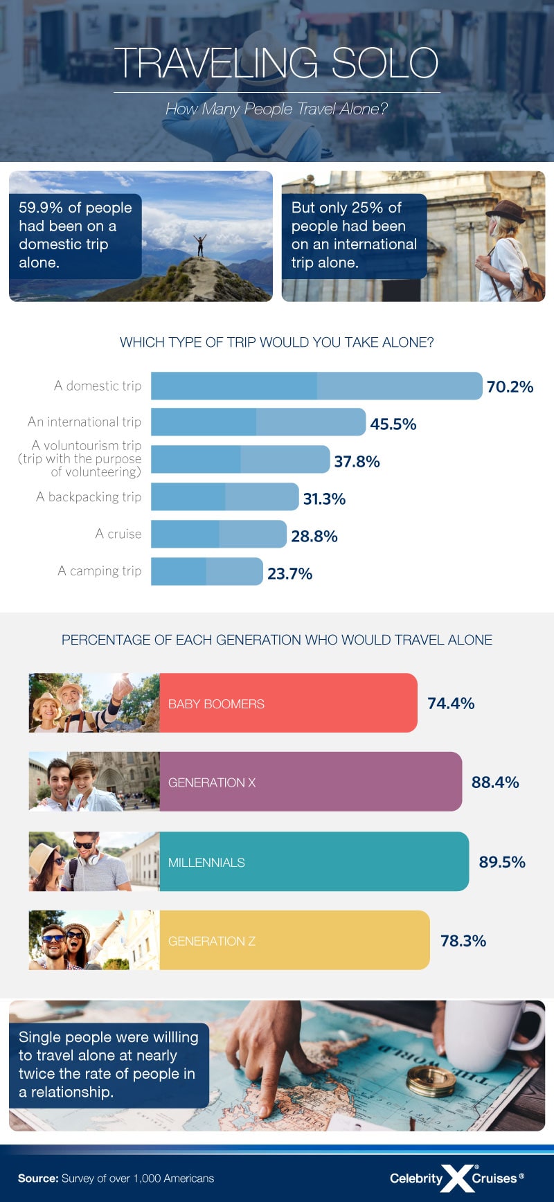 Respondents' attitudes toward solo travel also hinged on the type of trip in question: For example, fewer than 1 in 4 respondents expressed interest in attempting a camping excursion alone. Additionally, respondents on both ends of the age spectrum were less inclined to take solo trips. In the case of baby boomers, this reluctance could reflect aging-related health concerns: If one should get ill or injured while traveling, it's helpful to have companions. Yet, millions of baby boomers are currently living without children or a partner, and being single seems to increase solo-travel's appeal. Among our respondents, single folks were roughly twice as willing as individuals in a relationship to travel alone.