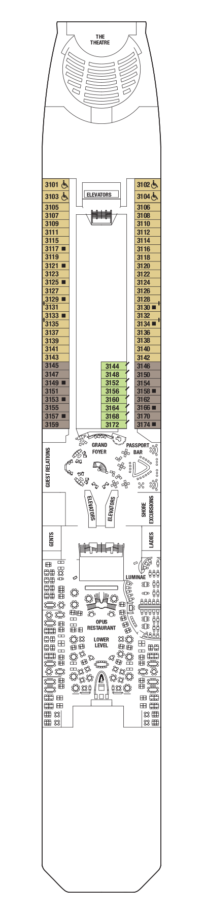 Our stunning foyer greets you with a spectacular onyx staircase, marble floors and the first panoramic ocean-view glass elevators at sea.