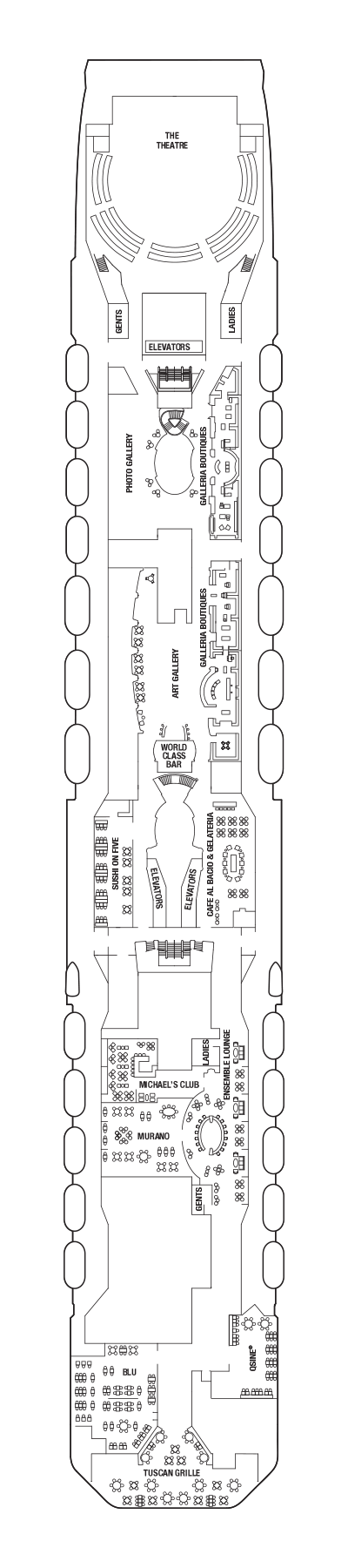 The Theater is the premier live performance venue aboard Celebrity Reflection. While accommodating a generous audience, it retains a comfortable, intimate atmosphere, bringing you production shows, beautiful musical arrangements, and sidesplitting comedy.