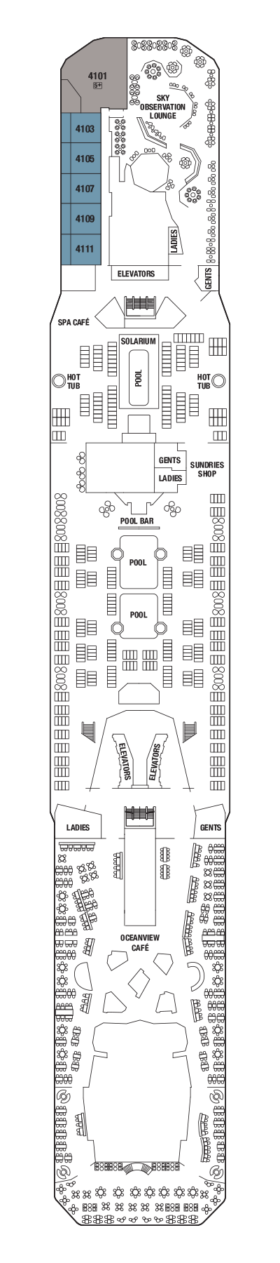 When you arrive at the highest point on the ship, you won't be disappointed. Whether you're looking for the ideal spot to do some early morning yoga, stretch out on a canopied lounge bed, or for the best view of the beautiful starry sky to cap off another magical evening aboard, The Solstice Deck is where your search ends and the relaxation begins.