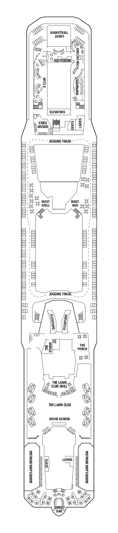 A freshly manicured lawn on the highest deck. Enjoy casual outdoor activities in a decidedly Country Club atmosphere and let the grass between your toes take you places no cruise has gone before.