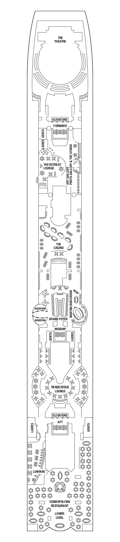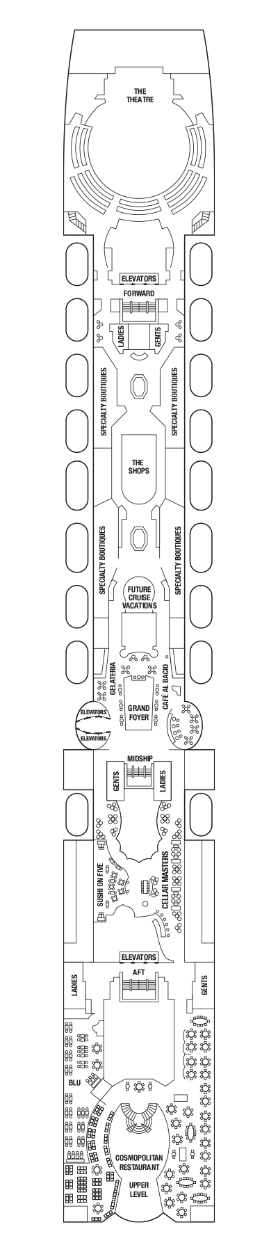 The Theatre is the premier live performance venue aboard Celebrity Summit. While accommodating a generous audience, it retains a comfortable, intimate atmosphere, bringing you production shows, beautiful musical arrangements, and sidesplitting comedy.