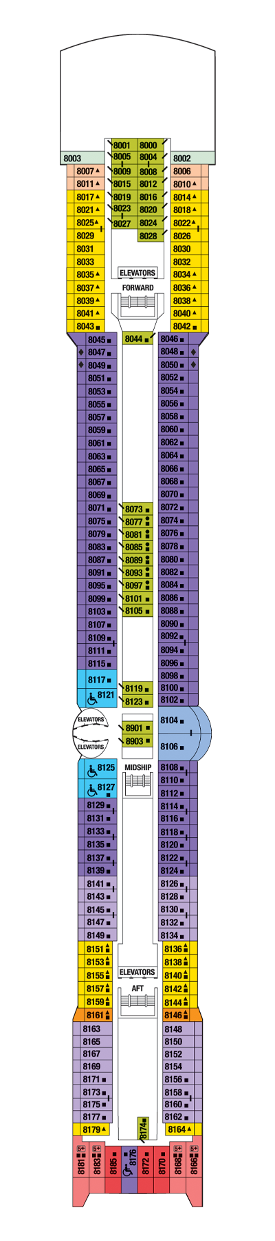 Our stunning foyer greets you with a spectacular onyx staircase, marble floors and the first panoramic ocean-view glass elevators at sea.
