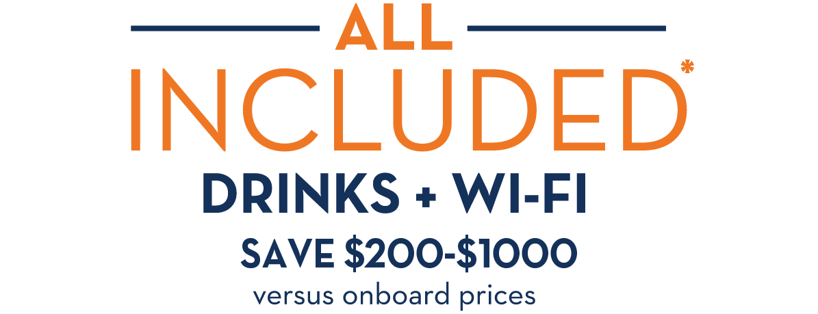 “All Included” pricing applies to sailings booked and departing on or after October 4, 2023, excluding Galapagos cruises, in an inside, ocean view, veranda, Concierge Class, or AquaClass stateroom (“Eligible Bookings”). All guests within an Eligible Booking who choose “All Included” pricing, will receive a Classic Drinks Package and an unlimited Basic Wi-Fi package. All guests in the same stateroom must choose the same rate. Please visit www.celebritycruises.com/things-to-do-onboard/onboard-packages/beverage-packages for further information on available beverages and full restrictions and www.celebritycruises.com/things-to-do-onboard/onboard-packages/internet-and-phone-packages for further information on wi-fi.
